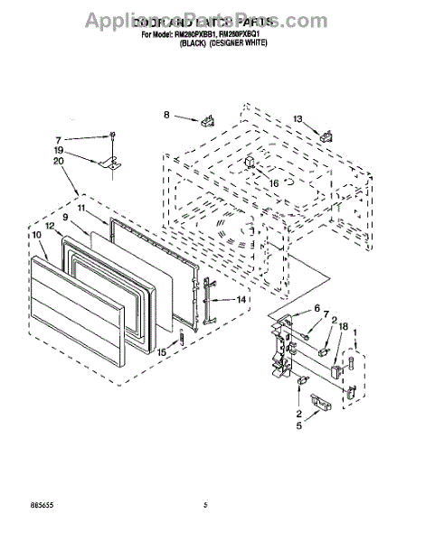 Parts for Whirlpool RM280PXBB1: 05 - Door And Latch Parts