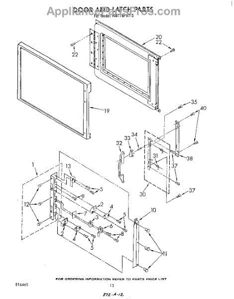 Parts for Whirlpool RM778PXT3: 09 - Door And Latch Parts