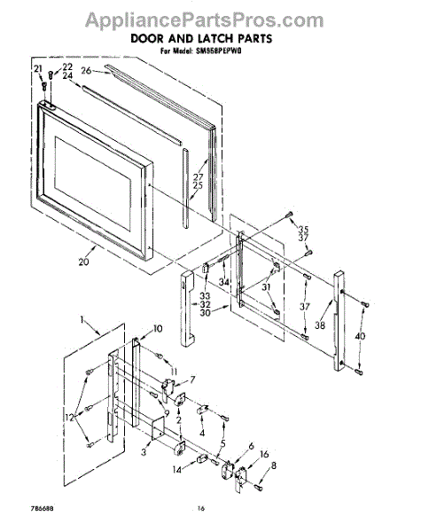 Parts for Whirlpool SM958PEPW0: 12 - Door And Latch Parts