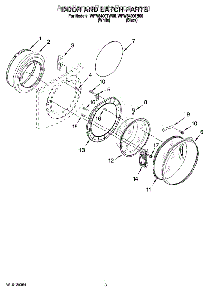 Parts for Whirlpool WFW8400TB00: 02 - Door And Latch Parts