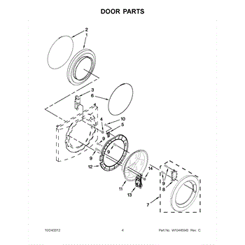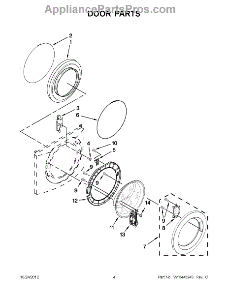 Parts for Whirlpool WFW9050XW03: 02 - Door Parts