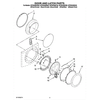 Parts for Whirlpool WFW9400SB02: 02 - Door And Latch Parts