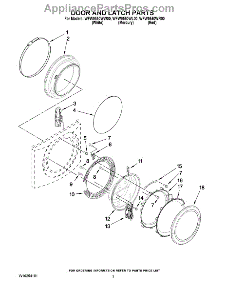 Parts for Whirlpool WFW9550WR00: 02 - Door And Latch Parts