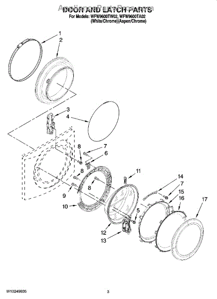 Parts for Whirlpool WFW9600TA02: 02 - Door And Latch Parts