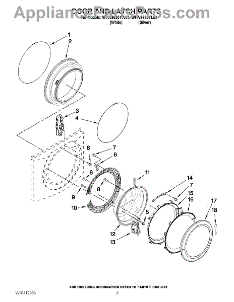 Parts for Whirlpool WFW9630YL00: 02 - Door And Latch Parts