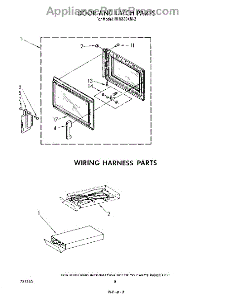 Parts for Whirlpool MH6600XM2: 05 - Door And Latch , Wiring Harness Parts