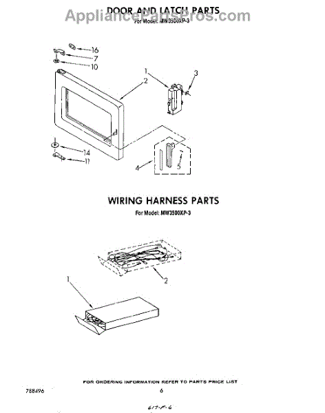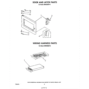 Parts for Whirlpool MW3500XP3: 04 - Door And Latch , Wiring Harness Parts