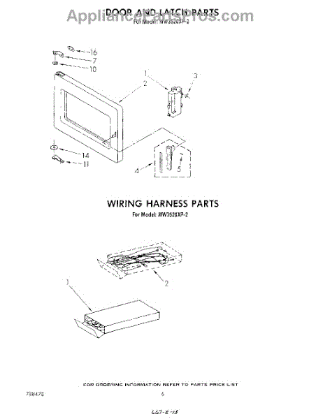 Parts for Whirlpool MW3520XP2: 04 - Door And Latch, Wiring Harness Parts