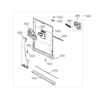 The Dishwasher Control Panel Assembly is an OEM replacement part for LG dishwashers. It contains both the electronic control interface and mounting points within the appliance door frame.