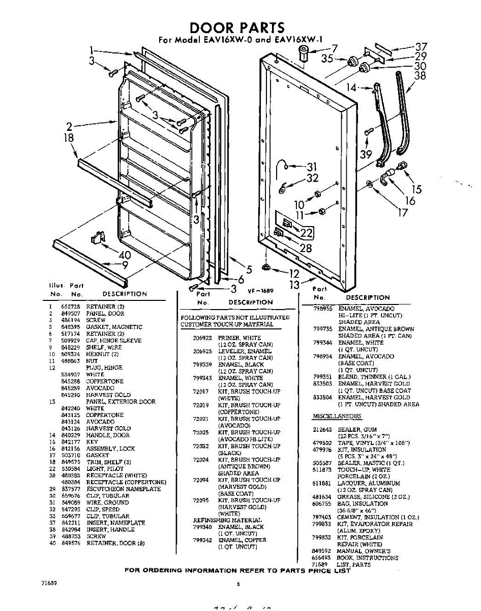 Parts for Whirlpool EAV16XW1: 06 - Door , Lit / Optional Parts
