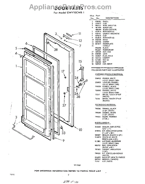 Parts for Whirlpool EWV10CWR1: 02 - Door, Lit / Optional Parts