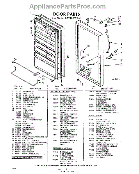Parts for Whirlpool EXV16XWR2: 06 - Door , Lit / Optional Parts