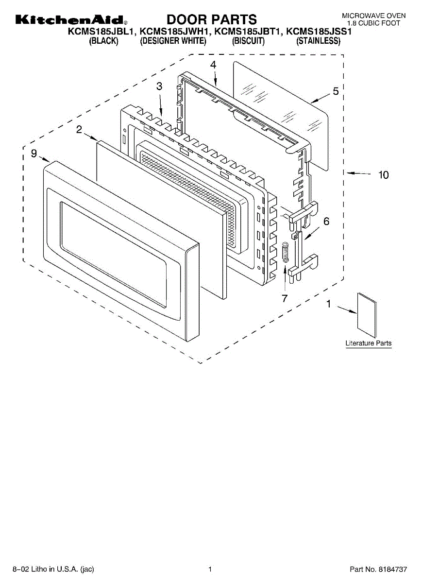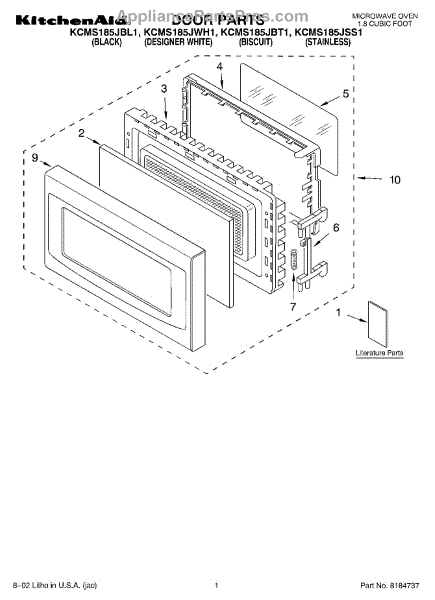 Parts for Kitchenaid KCMS185JWH1: 01 - Door, Literature Parts