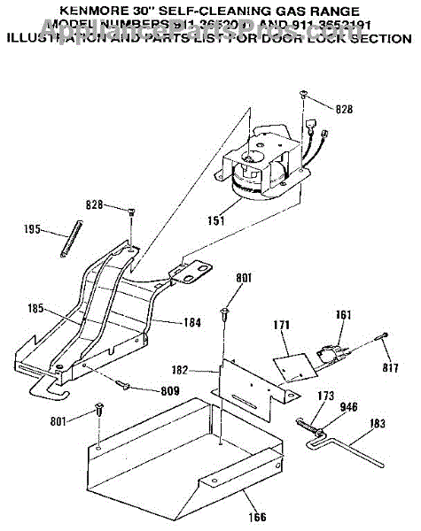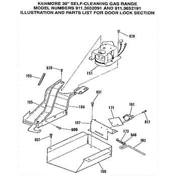 This oven door latch assembly secures the door during the self-clean cycle and reports lock status to the control. Replace a worn or failed latch to restore safe locking and reliable self-clean operation.