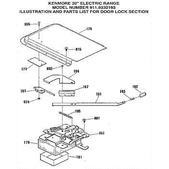 Parts for Kenmore 911.9330193 (9119330193, 911 9330193): Door Lock Section Parts