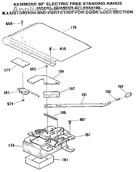Parts for Kenmore 911.9333190 (9119333190, 911 9333190): Door Lock Section Parts