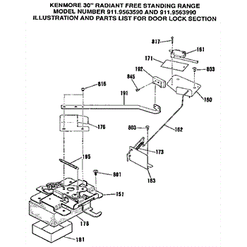 Parts for Kenmore 911.9563990 (9119563990, 911 9563990): Door Lock Section Parts