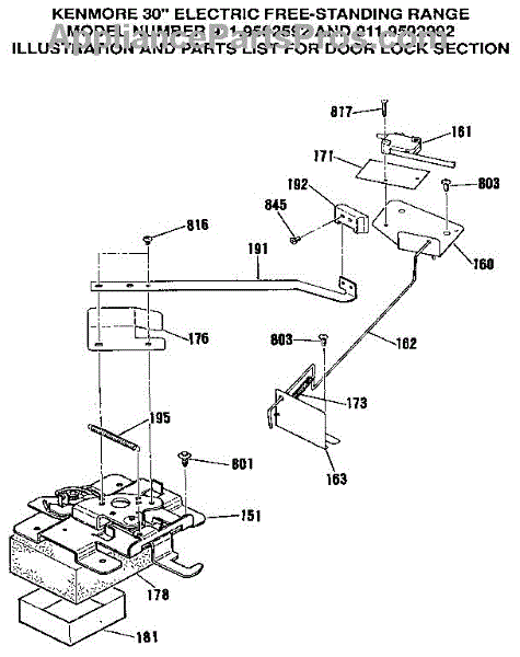 Parts for Kenmore 911.9592992 (9119592992, 911 9592992): Door Lock Section Parts