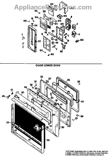 Parts for Ge JKP67G*01: Door Lower Oven Parts