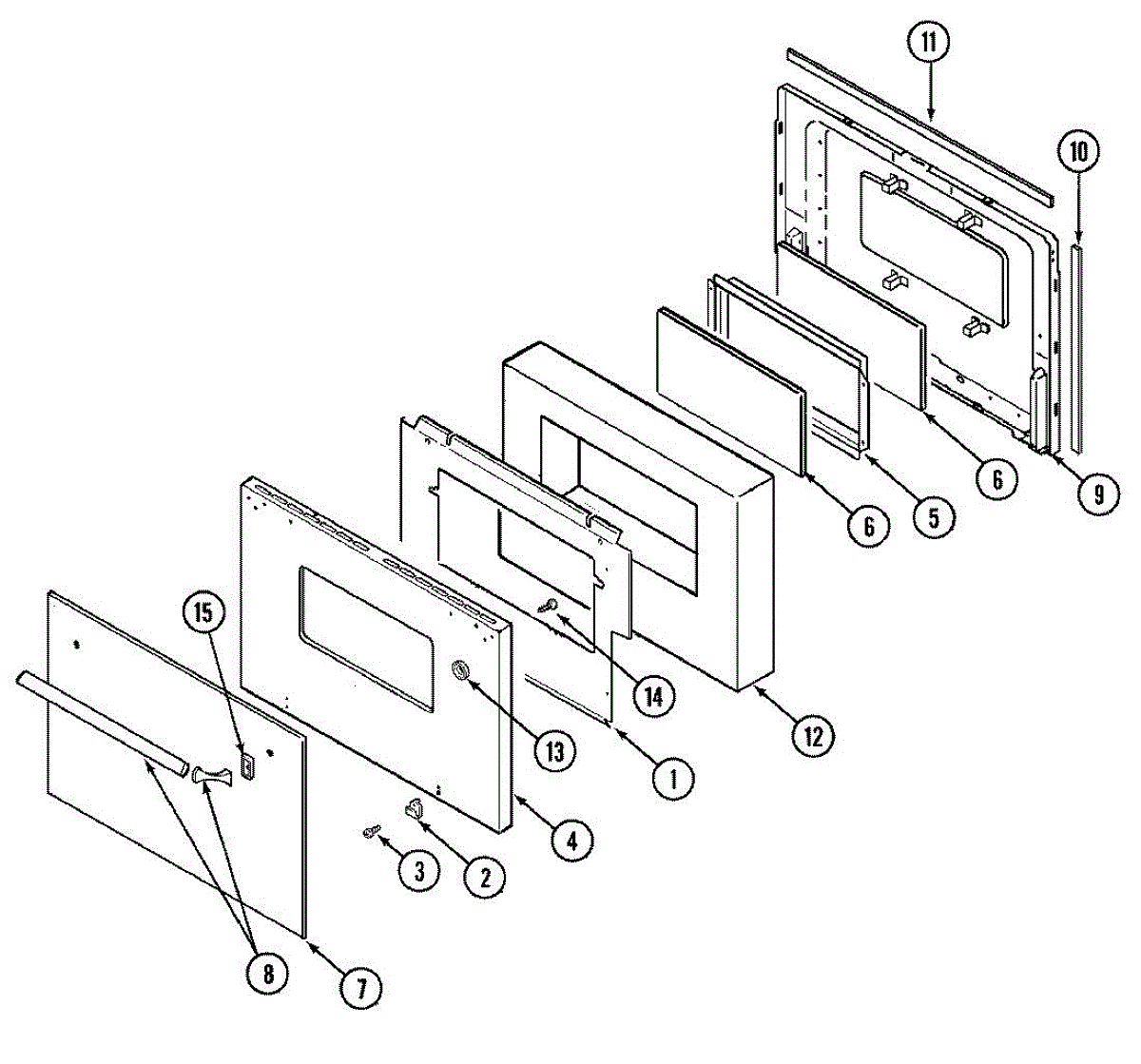 Outer door panel for gas wall ovens. Covers the exterior face of the oven door. Replace if cracked, dented, discolored, or damaged from impact.