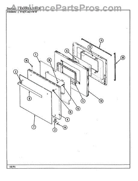 Spacer that fits between inner and outer oven door glass panels to maintain proper gap and alignment. Replaces missing, cracked, or damaged spacers.