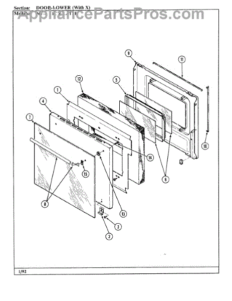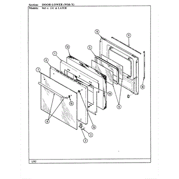 Outer door panel for gas wall ovens. Covers the exterior face of the oven door. Replace if cracked, dented, discolored, or damaged from impact.
