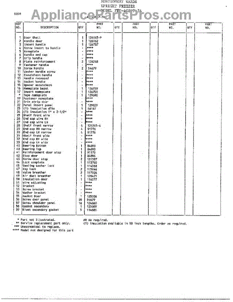 Parts for Frigidaire 40847A: Door Page 2 Parts