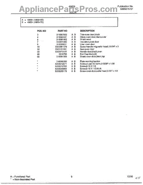 Parts for Frigidaire 486547D: Door Page 2 Parts