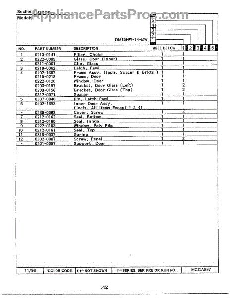 Parts for Magic Chef DM15H14TMW: Door Page 2 Parts