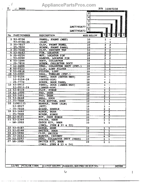 (Adhesive Sold Separately).To order adhesive use part number WPY055980.This Part Can Be Used As Both The Front And Rear Seal In Some Models