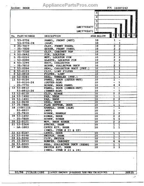 (Adhesive Sold Separately).To order adhesive use part number WPY055980.This Part Can Be Used As Both The Front And Rear Seal In Some Models