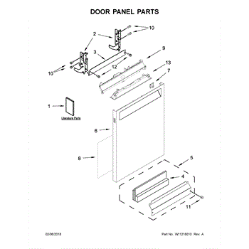 The Dishwasher Access Panel is an OEM part for Whirlpool dishwashers. This panel covers the lower front section of the dishwasher, providing a finished look while protecting internal components from debris and damage.