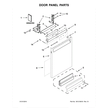 The Dishwasher Access Panel is an OEM part for Whirlpool dishwashers. This panel covers the lower front section of the dishwasher, providing a finished look while protecting internal components from debris and damage.