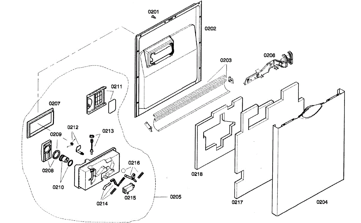 Interior panel for dishwasher door that protects components and provides a finished surface. Replace if cracked, dented, or damaged to restore sealing.