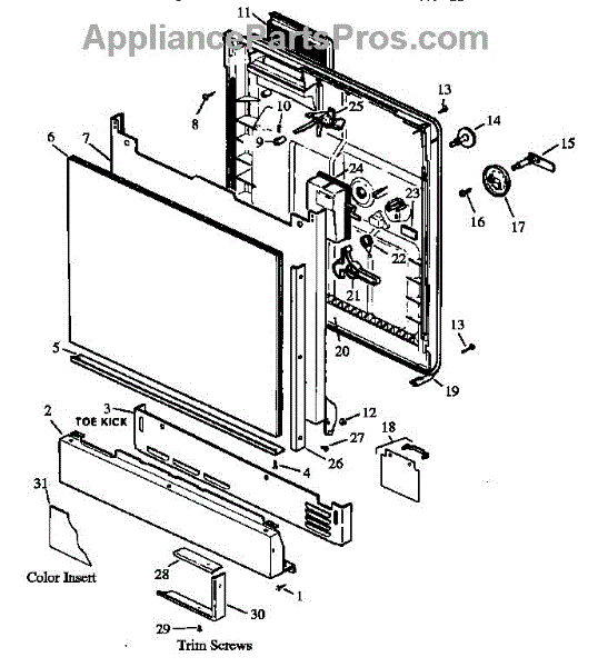 Parts for Caloric DUS500B/P1173816W: Door / Panel Parts