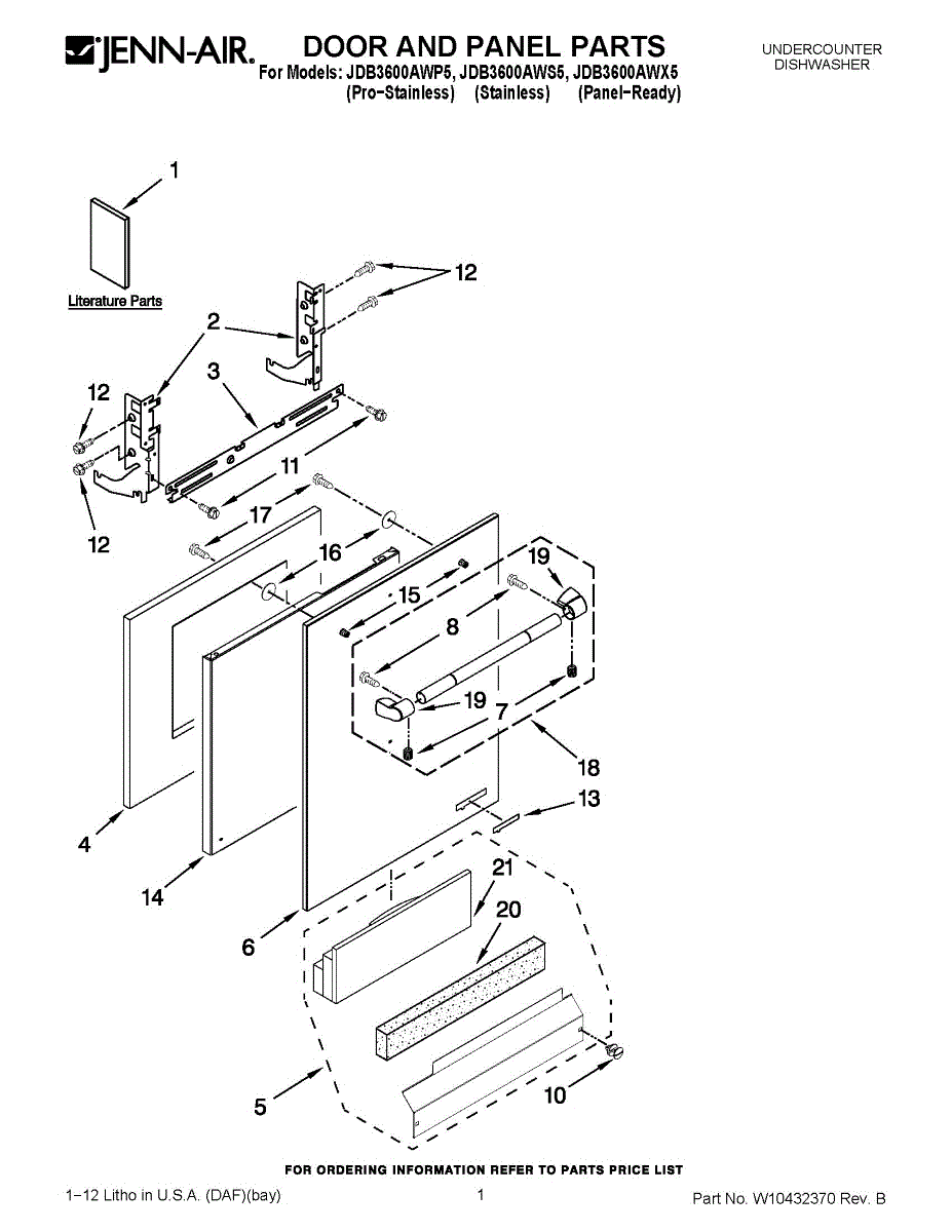 The Dishwasher Access Panel is an OEM part for Whirlpool dishwashers. This panel covers the lower front section of the dishwasher, providing a finished look while protecting internal components from debris and damage.