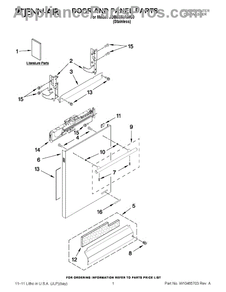 The Panel (BLK) is an OEM part for Whirlpool dishwashers. This black exterior panel is designed to provide a sleek and durable front surface for the dishwasher, enhancing its appearance and protecting internal components.