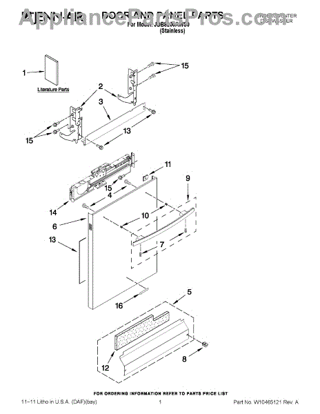 The Panel (BLK) is an OEM part for Whirlpool dishwashers. This black exterior panel is designed to provide a sleek and durable front surface for the dishwasher, enhancing its appearance and protecting internal components.