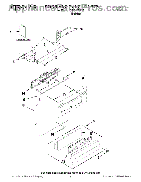 The Dishwasher Access Panel is an OEM part for Whirlpool dishwashers. This panel covers the lower front section of the dishwasher, providing a finished look while protecting internal components from debris and damage.