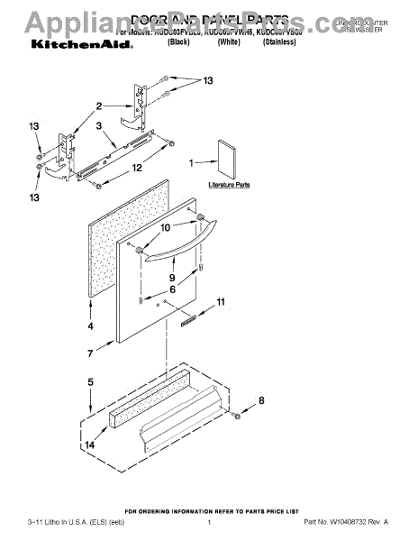 The Panel (BLK) is an OEM part for Whirlpool dishwashers. This black exterior panel is designed to provide a sleek and durable front surface for the dishwasher, enhancing its appearance and protecting internal components.