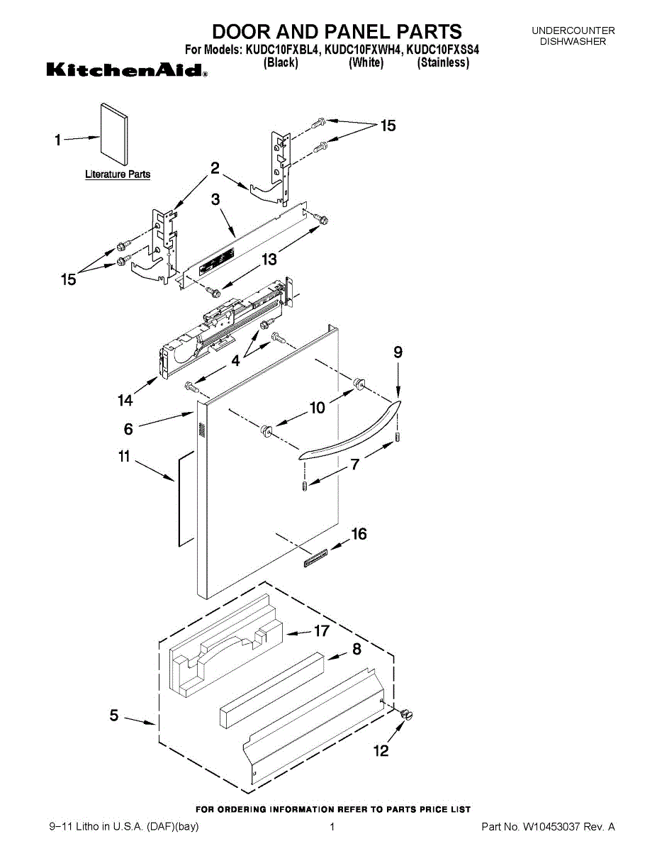 Parts for Kitchenaid KUDC10FXSS4: 01 - Door And Panel Parts