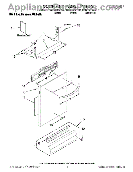 Parts for Kitchenaid KUDC10FXWH3: 01 - Door And Panel Parts