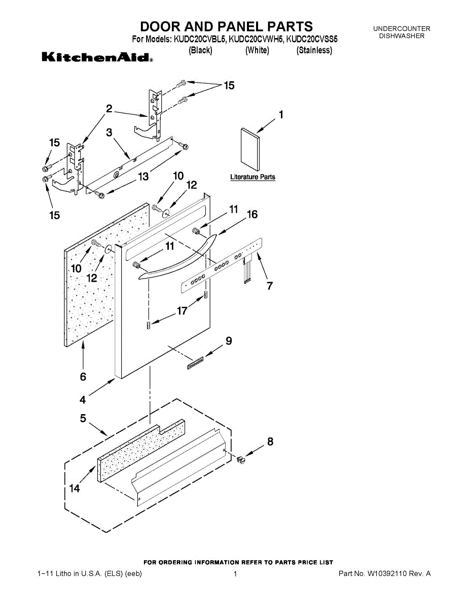 Color: Black. Includes Items door isulation, nameplate, (2)nuts & (2)mounting studs. For white use WPW10078000. For stainless use WPW10137621
