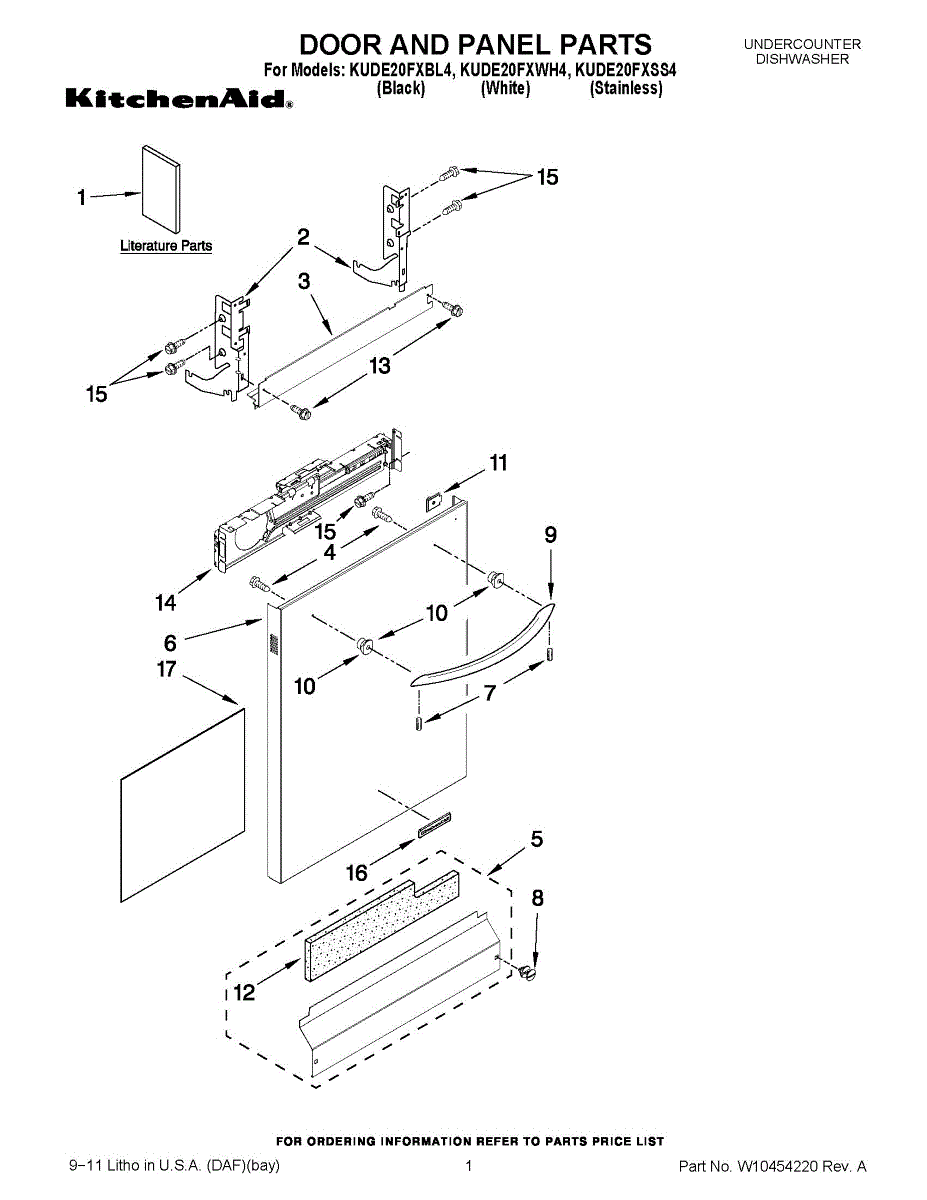 Parts for Kitchenaid KUDE20FXSS4: 01 - Door And Panel Parts