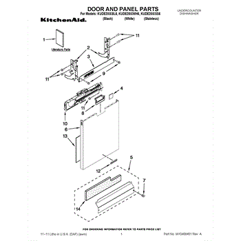 The Panel (BLK) is an OEM part for Whirlpool dishwashers. This black exterior panel is designed to provide a sleek and durable front surface for the dishwasher, enhancing its appearance and protecting internal components.