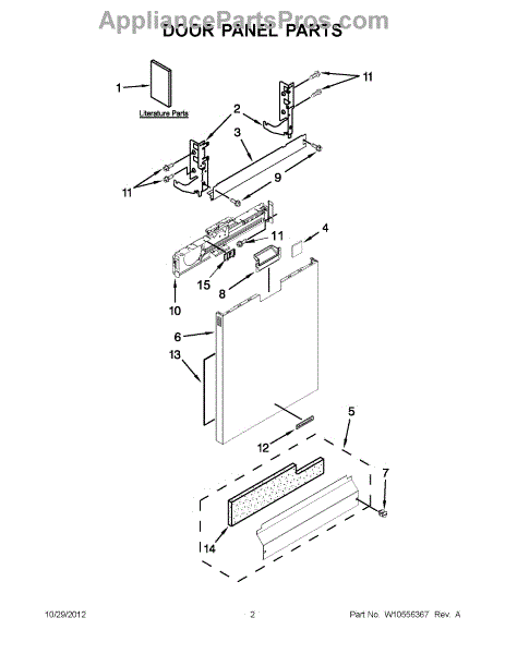 The Panel (BLK) is an OEM part for Whirlpool dishwashers. This black exterior panel is designed to provide a sleek and durable front surface for the dishwasher, enhancing its appearance and protecting internal components.