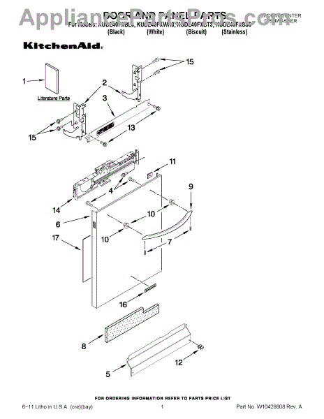 Parts for Kitchenaid KUDE40FXSS3: 01 - Door And Panel Parts