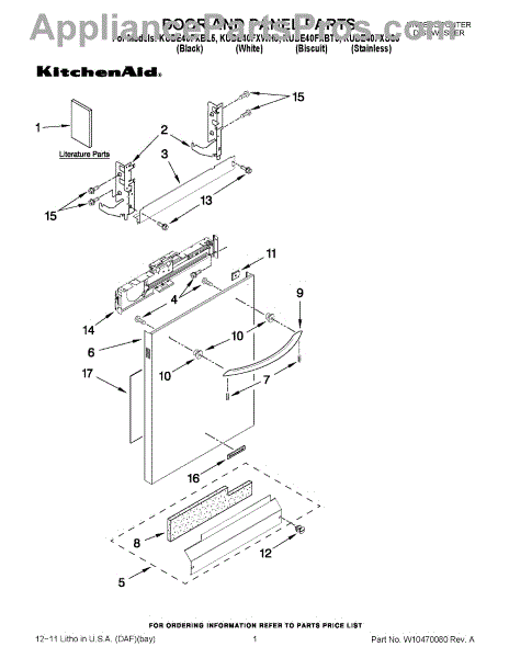 The Panel (BLK) is an OEM part for Whirlpool dishwashers. This black exterior panel is designed to provide a sleek and durable front surface for the dishwasher, enhancing its appearance and protecting internal components.
