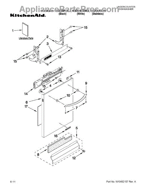 The Panel (BLK) is an OEM part for Whirlpool dishwashers. This black exterior panel is designed to provide a sleek and durable front surface for the dishwasher, enhancing its appearance and protecting internal components.