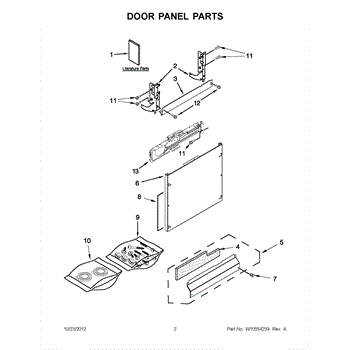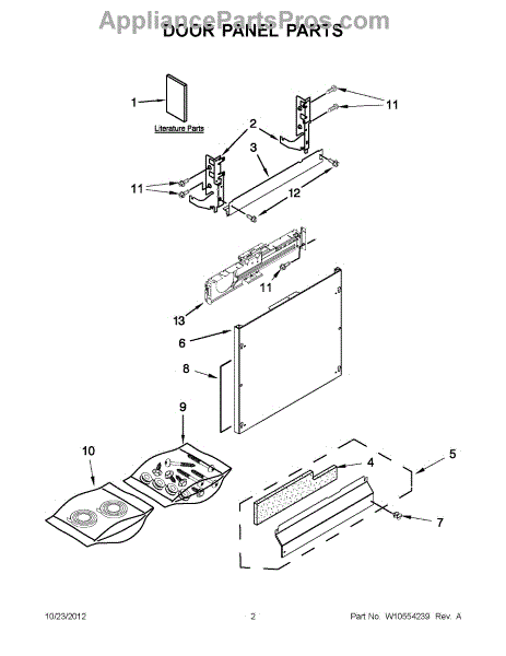 The Panel (BLK) is an OEM part for Whirlpool dishwashers. This black exterior panel is designed to provide a sleek and durable front surface for the dishwasher, enhancing its appearance and protecting internal components.
